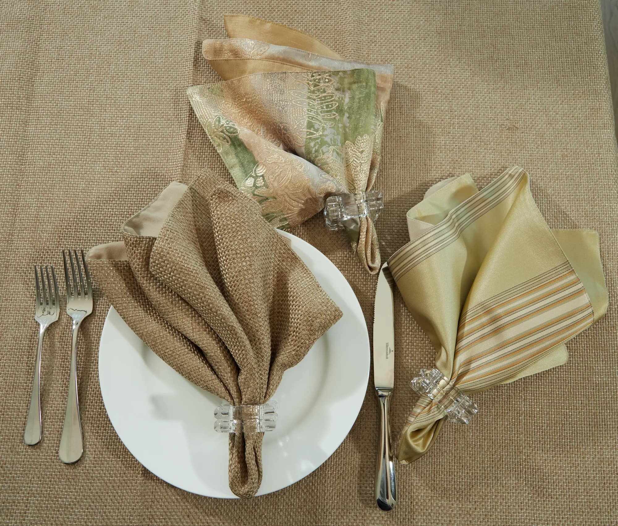 Set of 4 warm, earthy napkins with rustic woven texture.